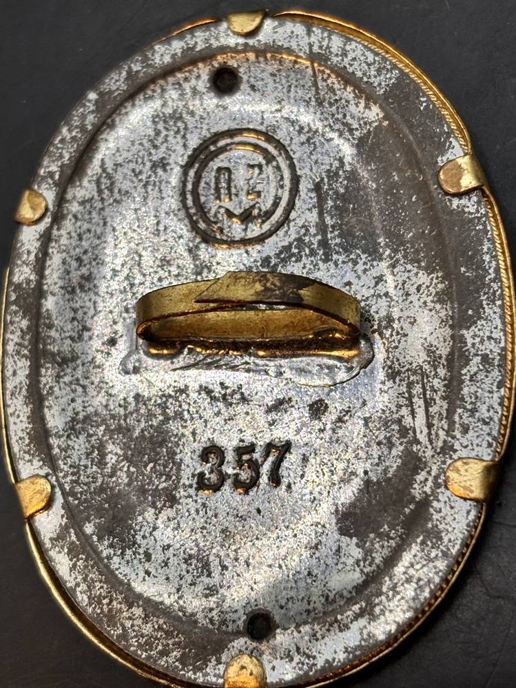 Mützenabzeichen der Deutschen Arbeitsfront, 5x4 cm, RZM und Nr. 357(sic) [1]