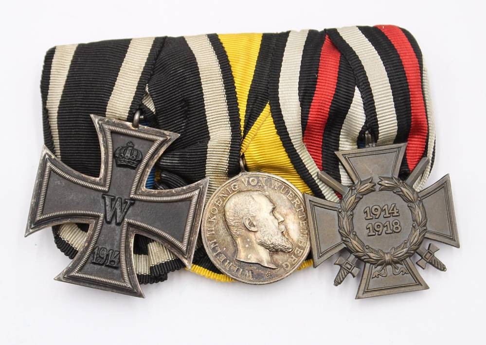 Ordensspange mit 3 Orden, EK 2. Kl., KTK sowie Tapferkeitsmedaille Württemberg, 1. WK [1]