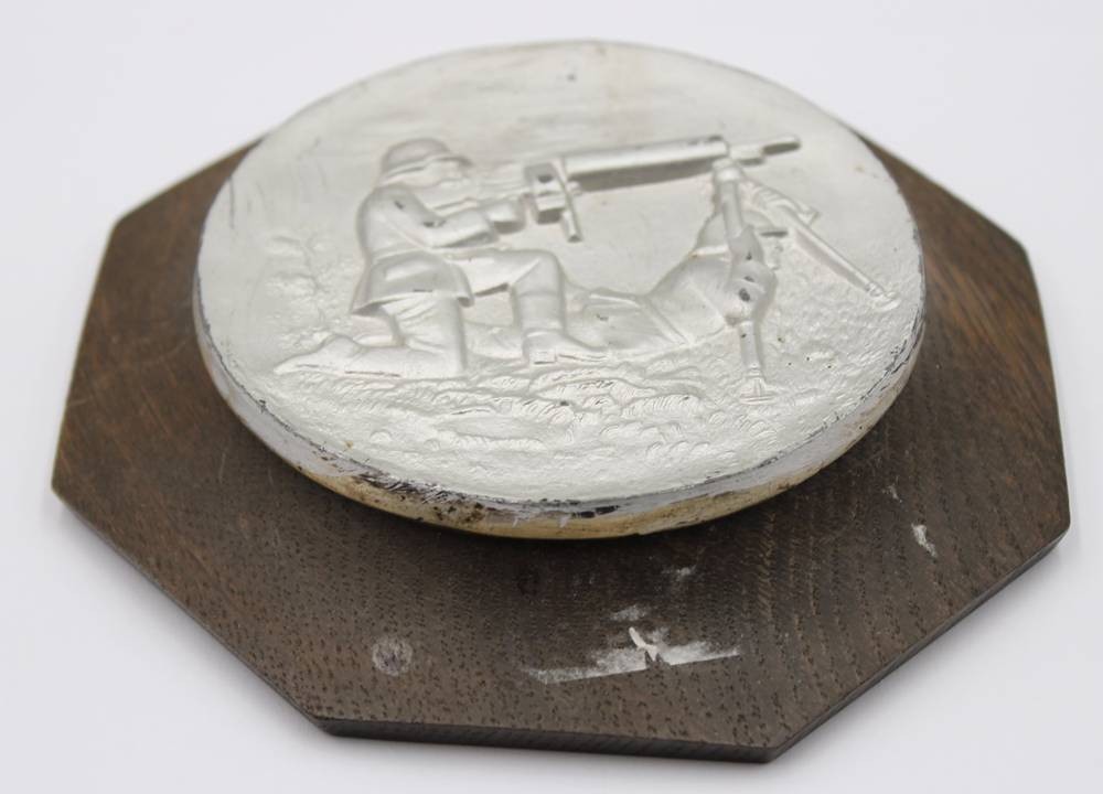 Plakette auf Holz, MG-Schütze, ca. D-15cm