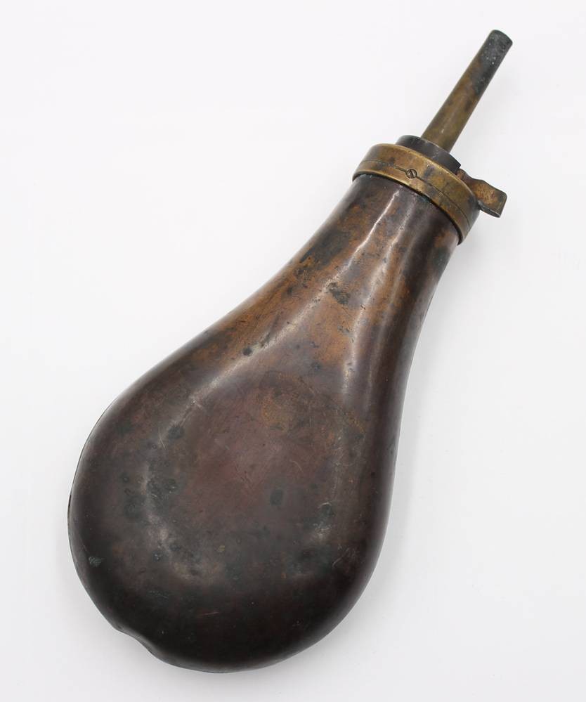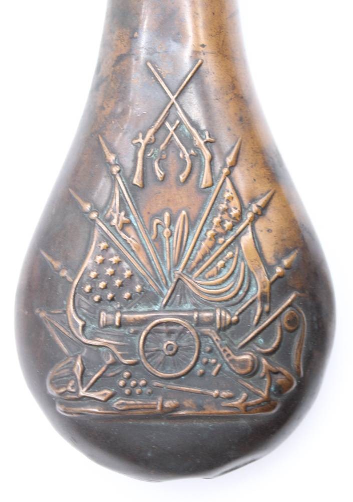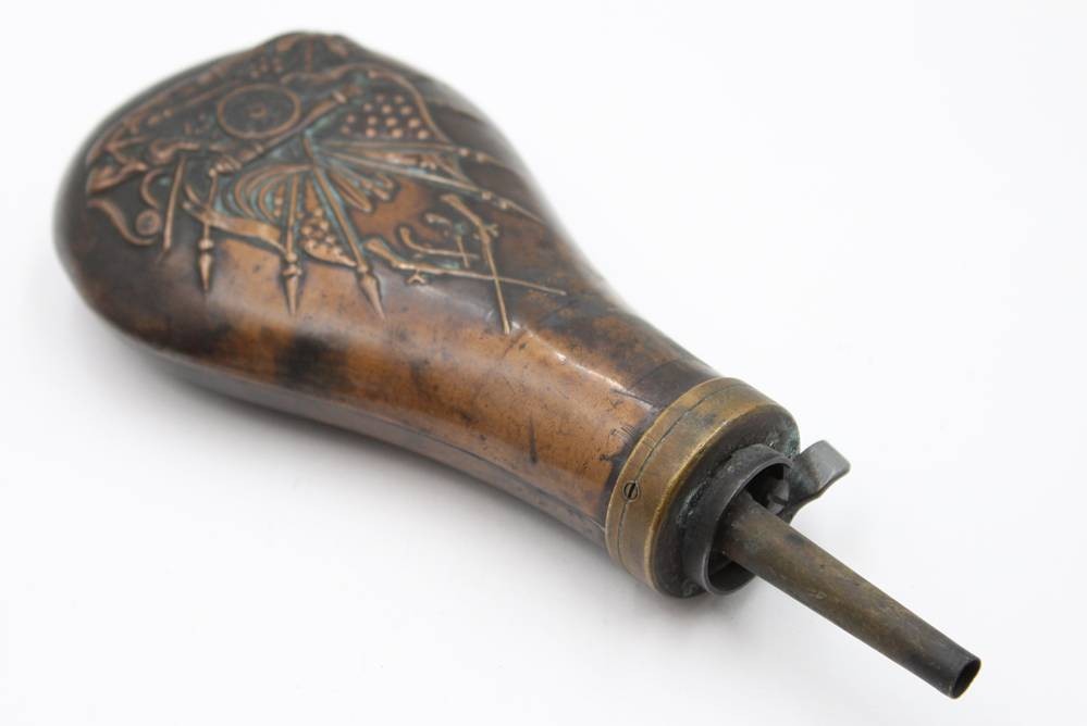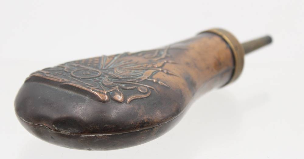 Pulverflasche, 19. Jhd. , Kupfer rerliefiert, ca. L-20cm [1]