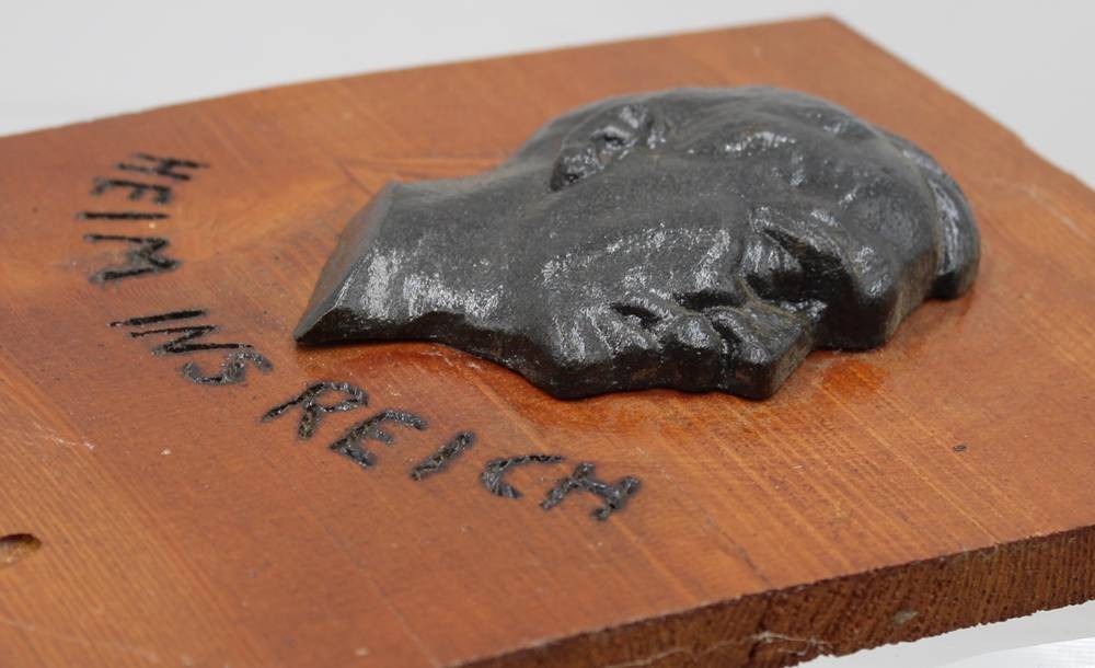 Relief auf Holz, A.Hitler, Heim ins Reich, aus der Zeit?, ca. 24,5 x 20cm [1]