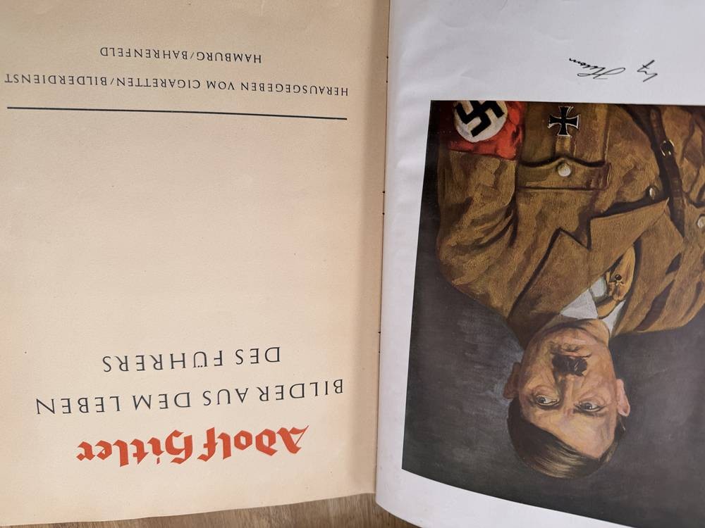 Sammelalbum "Adolf Hitler" Bilder aus seinem Leben, wohl komplett, anbei einige Zeitungsauschnitte etc., Buchrücken lose [1]
