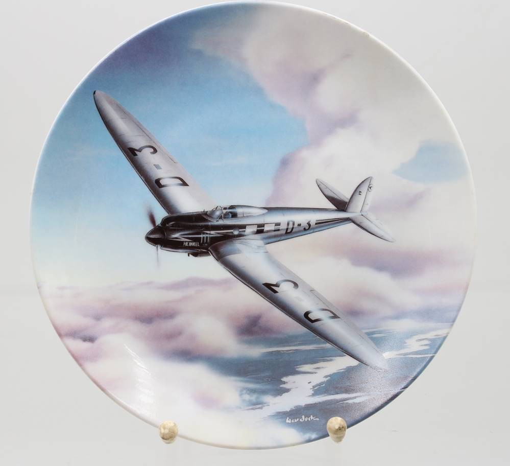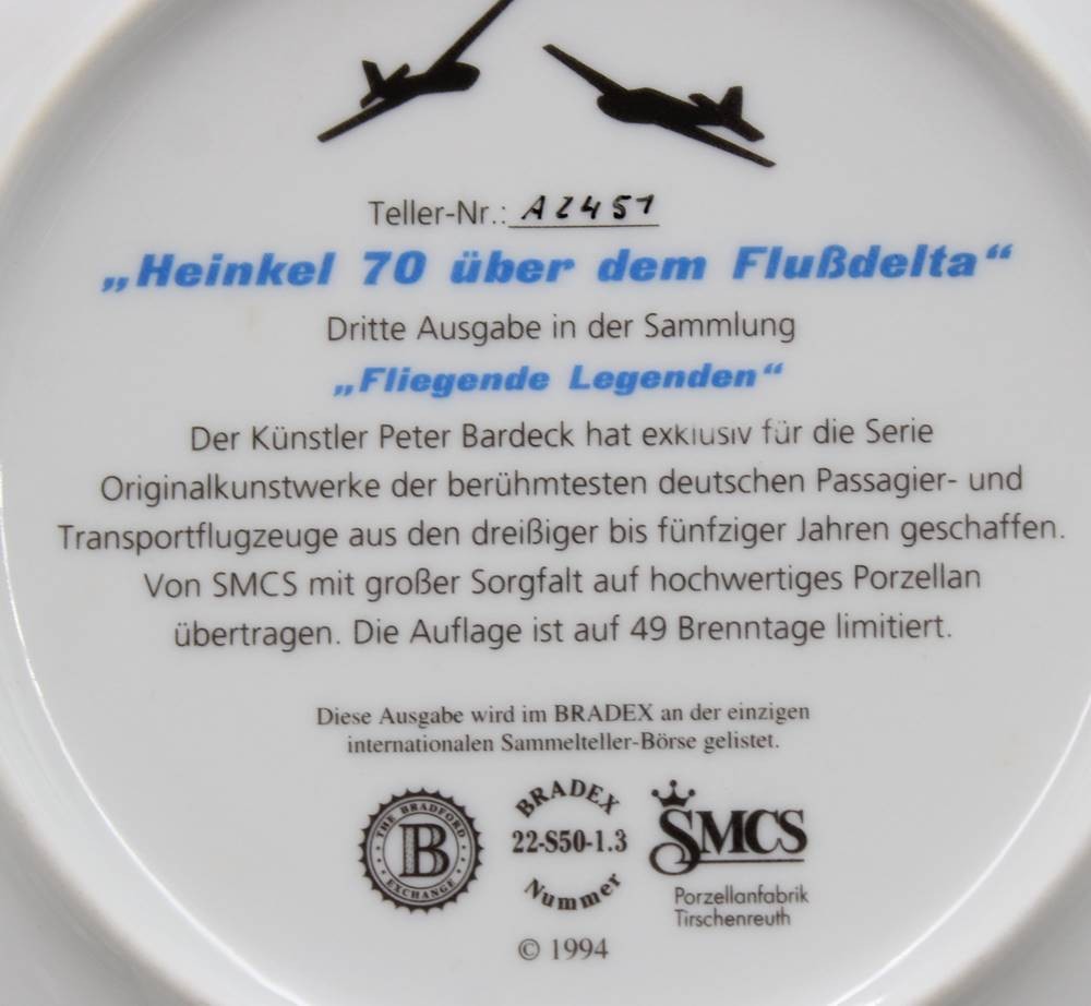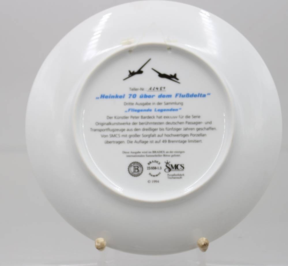Sammelteller, Heinkel 70 über dem Flußdelta, Bradex-Nr., D-19,5cm