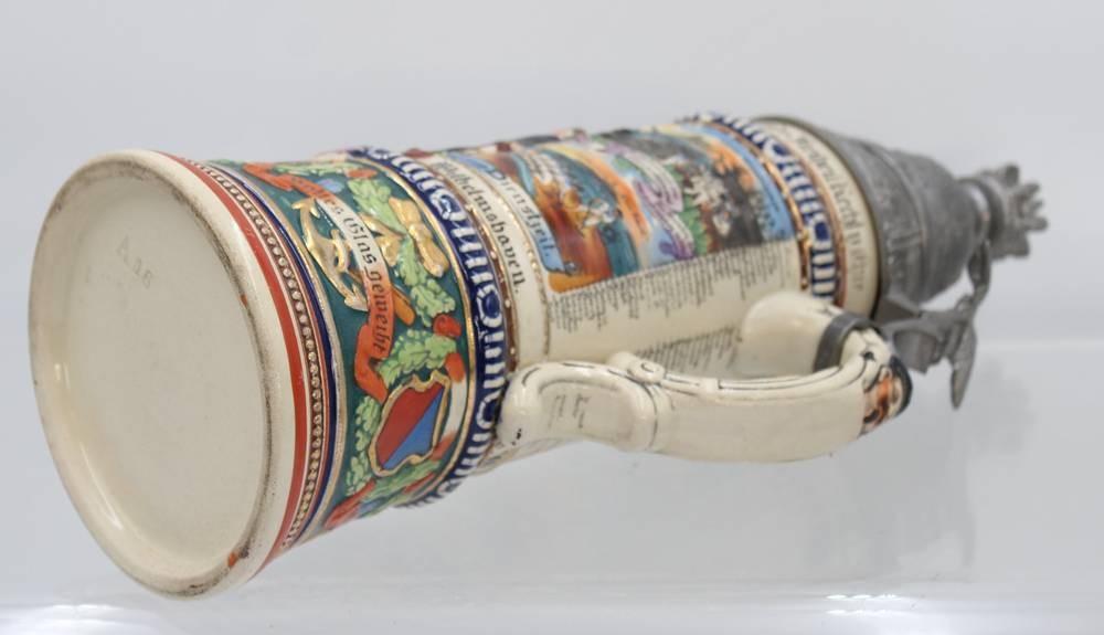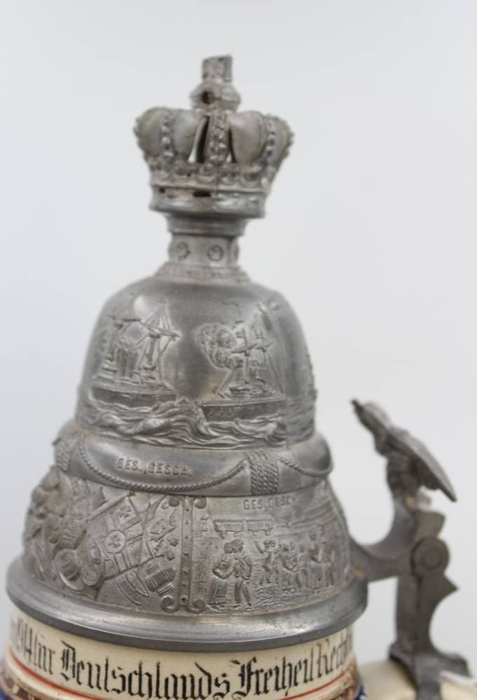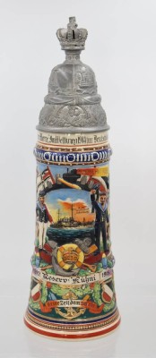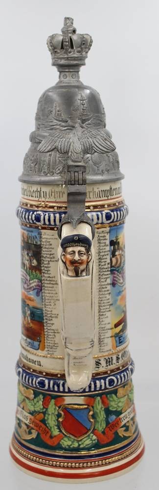 schöner Reservistenkrug, kaiserl. Marine, Erinnerung an Linienschiff SMS Oldenburg, Nr. A16, Zinndeckel, ca. H-36,5cm