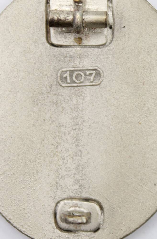 Verwundetenabzeichen in silber, Herst. "107", 3. Reich [1]