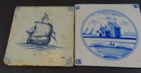 2x alte Delft Fliesen, Blaumalerei, Altersspuren