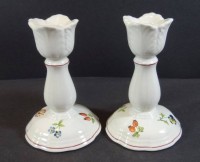 Paar Fusschalen, Regout, Petrus. Maastricht 1836 - 1899, Timor, bedruckt, von Hand ausgemalte Chinoiserien, Altersspuren, 1x Altriss, ca. H-11cm D-16cm und 10,5cm D-15,5cm