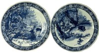 gr. Wandteller und gr. Schale (Blumenübertopf) Delft "RAAM" Blaumalerei, Teller Unterseite und Topfrand mit Chips, D-32 cm, H-16 cm, D-20 cm