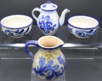 3tlg. Keramik-Konvolut, 1x gemarkt, Kanne, kl. Tafelaufsatz und Schale, Kanne H-20,5cm