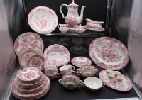 10x Speiseserviceteile, Regout, Petrus. Maastricht 1836 - 1899, Timor, bedruckt, von Hand ausgemalte Chinoiserien, Altersspuren, Platte, 3x tiefe Teller, 2x flache Teller und 4 Beilagenteller