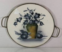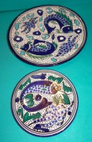 gr. Wandteller und gr. Schale (Blumenübertopf) Delft "RAAM" Blaumalerei, Teller Unterseite und Topfrand mit Chips, D-32 cm, H-16 cm, D-20 cm
