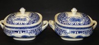 Paar Fusschalen, Regout, Petrus. Maastricht 1836 - 1899, Timor, bedruckt, von Hand ausgemalte Chinoiserien, Altersspuren, 1x Altriss, ca. H-11cm D-16cm und 10,5cm D-15,5cm