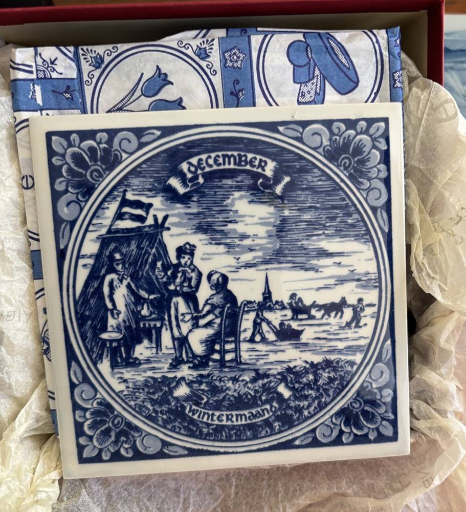 11 Fliesen als Untersetzer, Monate, September fehlt, Blaumalerei, Delft, ca. 12x12 cm