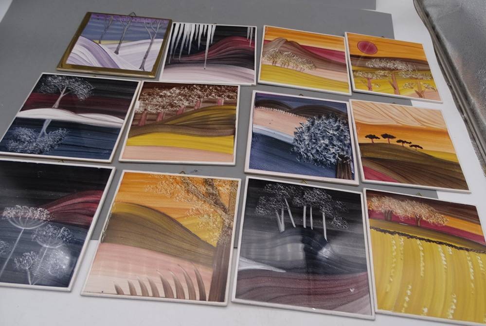 12x Fliesen "Kupfermühle Aquarell" Handarbeit 15x15 cm, 1x mit Chip
