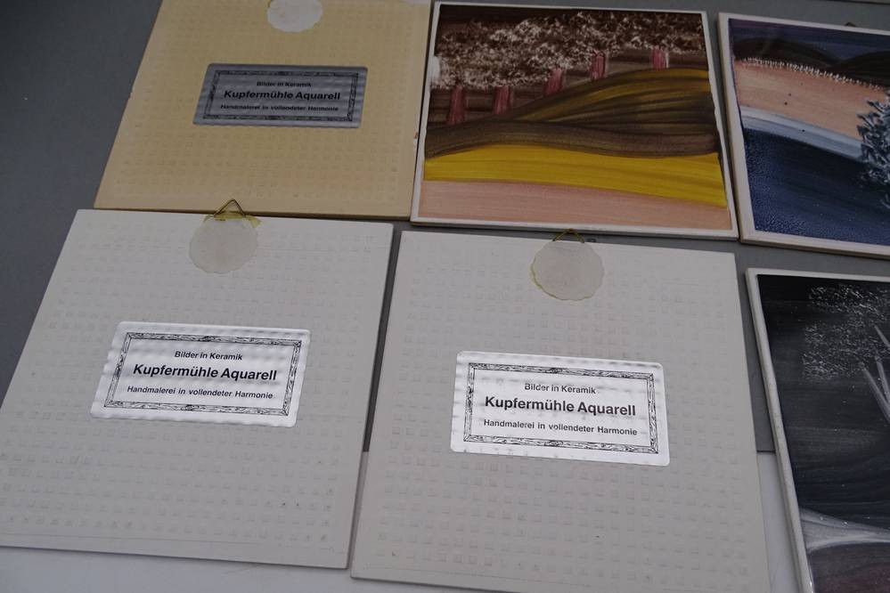 12x Fliesen "Kupfermühle Aquarell" Handarbeit 15x15 cm, 1x mit Chip [1]