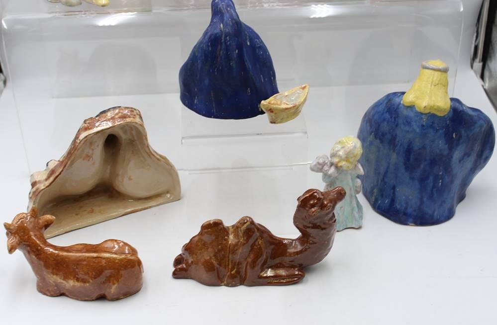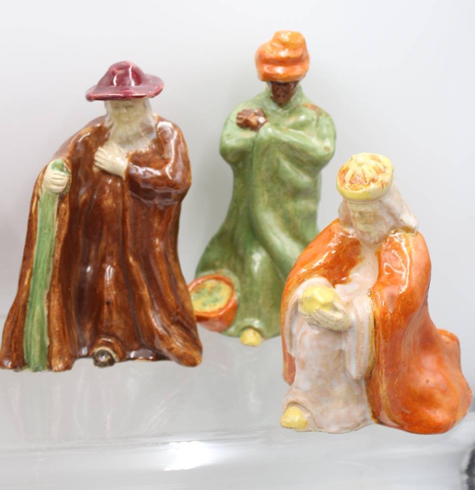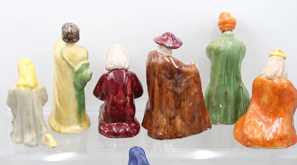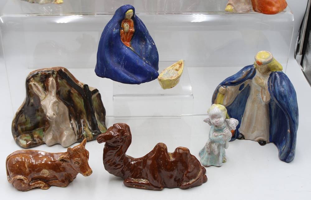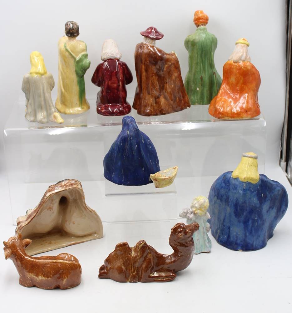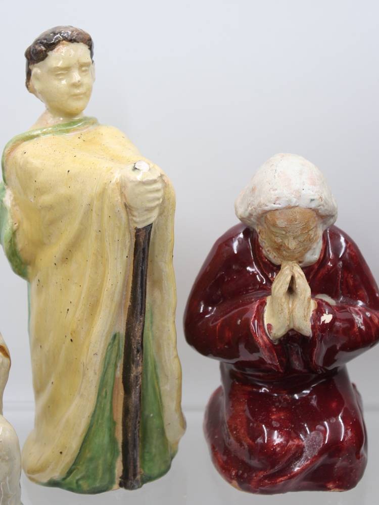 13x Krippefiguren, Terrakotta, 30/40er Jahre, 1x Hirtenstb abgebrochen, Größte H-22cm [1]