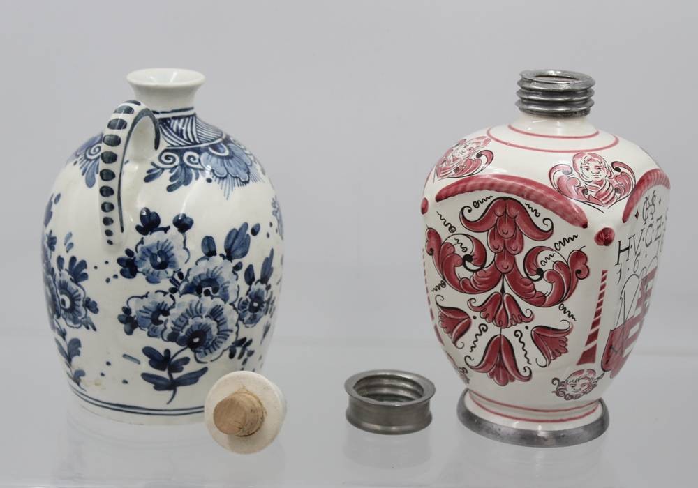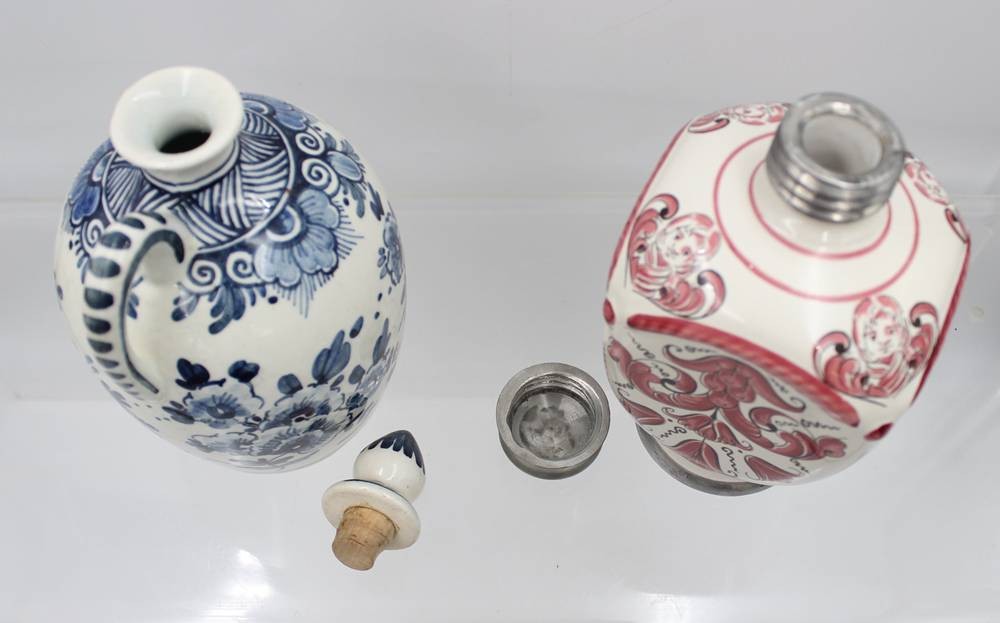 2x Apotheker-Gefässe nach antiken Vorbildern, Ulmer Keramik und Spanien, ca. H-21cm, [1]