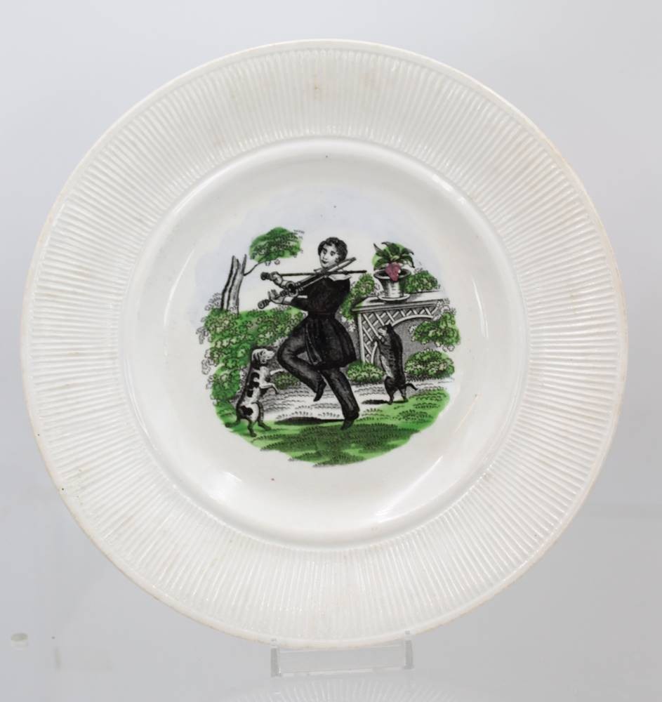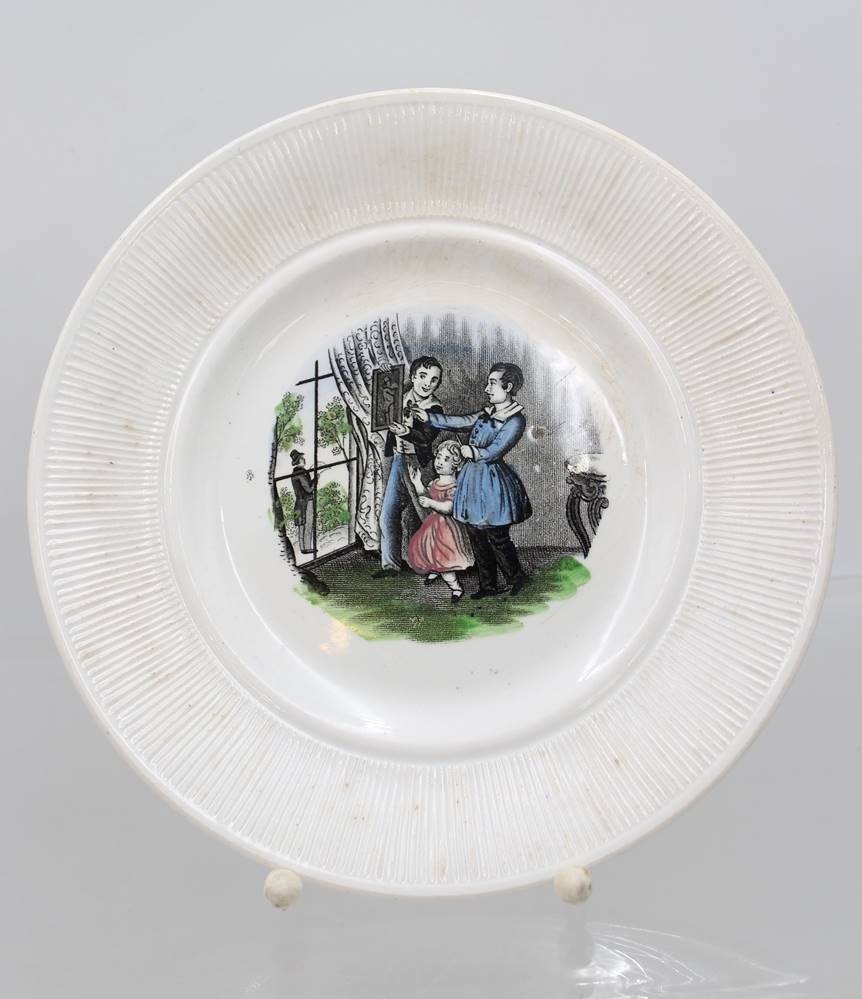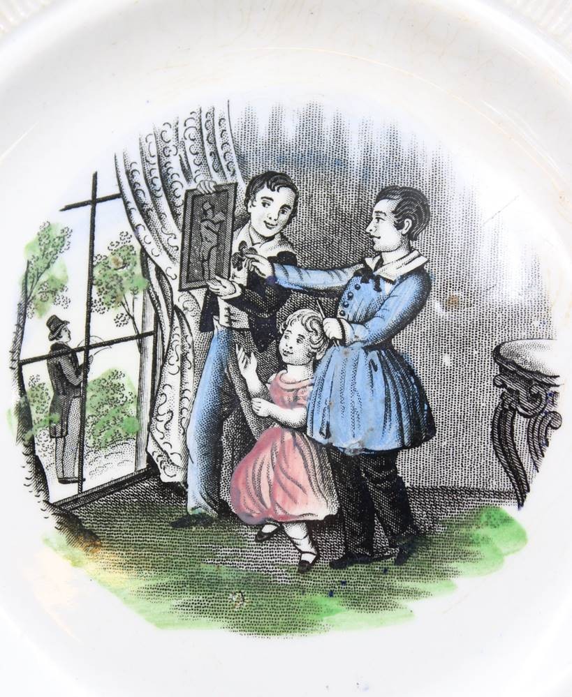 2x Bildteller, wohl USA um 1900, Altersspuren, ca. D-21cm
