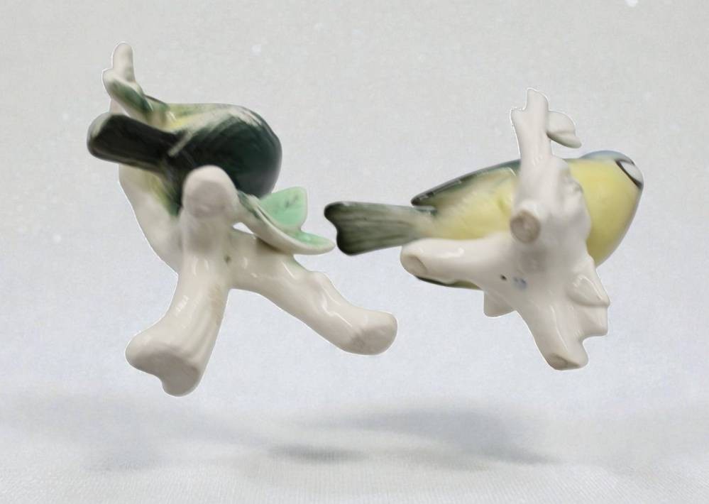2x div. Vogelfiguren, Unterglasurfarben, ungemarkt, ca. 14,2cm [1]