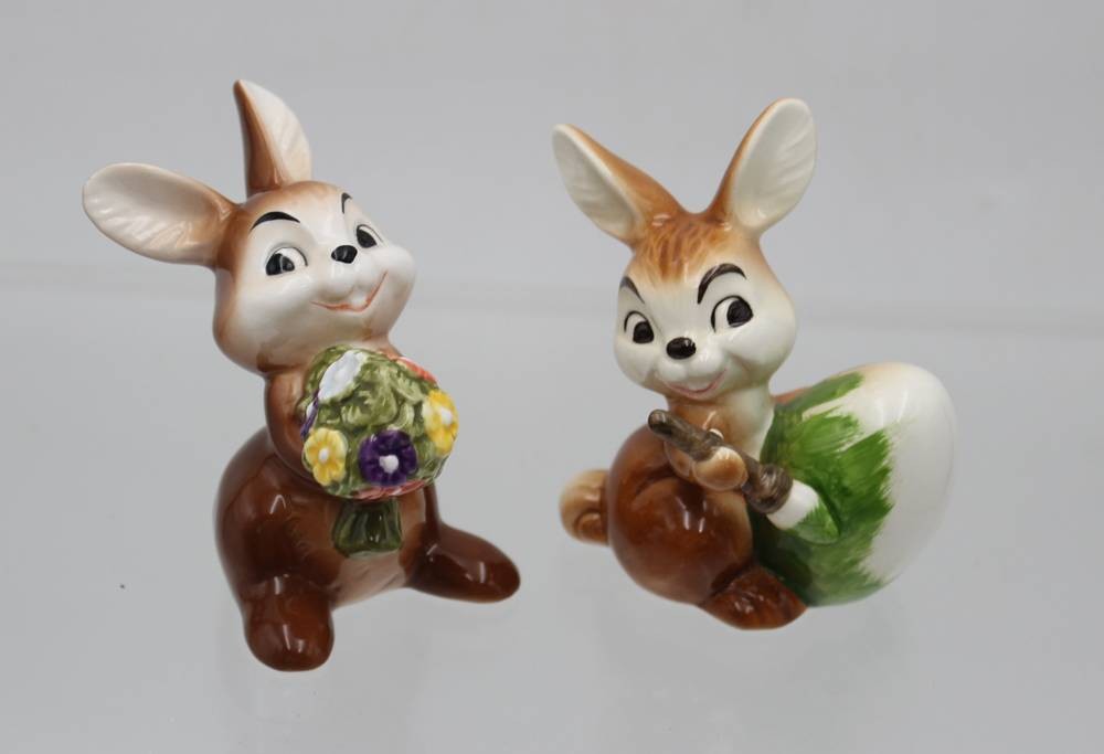 2x Hasenfiguren, Goebel, bemalt in Unterglasurfarben, ca. H-8cm [1]