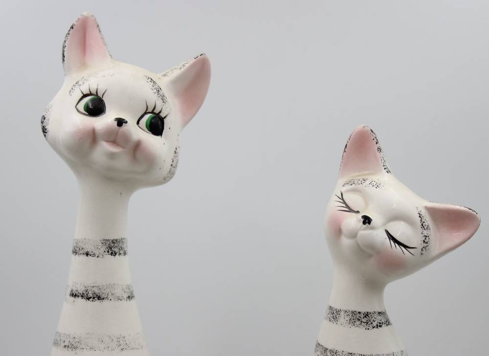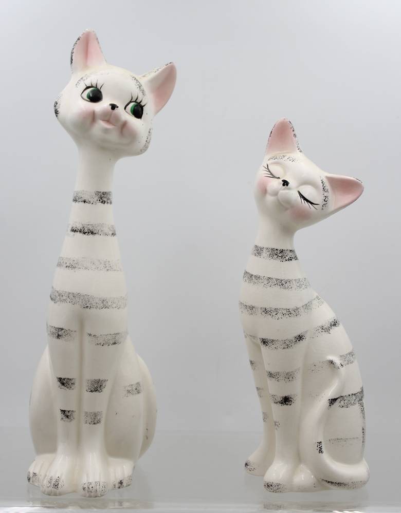 2x Katzenfiguren, wohl 70/80er Jahre, ca. H-32,5 u. 26,5cm [1]