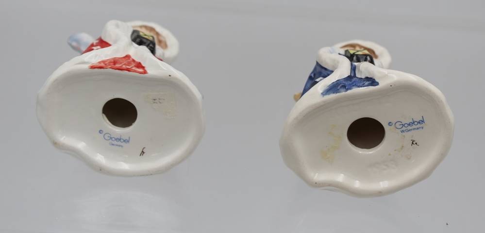 2x Weihnachtsengel mit Laternen, Goebel, bemalt, ca. H-9cm