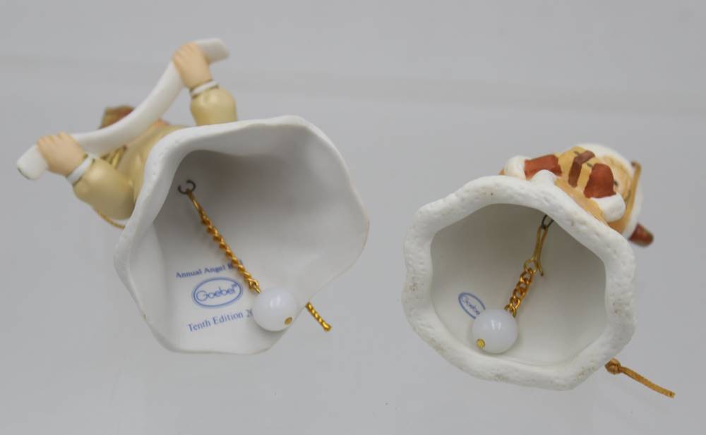 2x Weihnachtsglocken, Goebel, 2003, bemalt, Baumbehang, ca. H-7cm