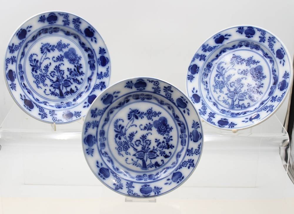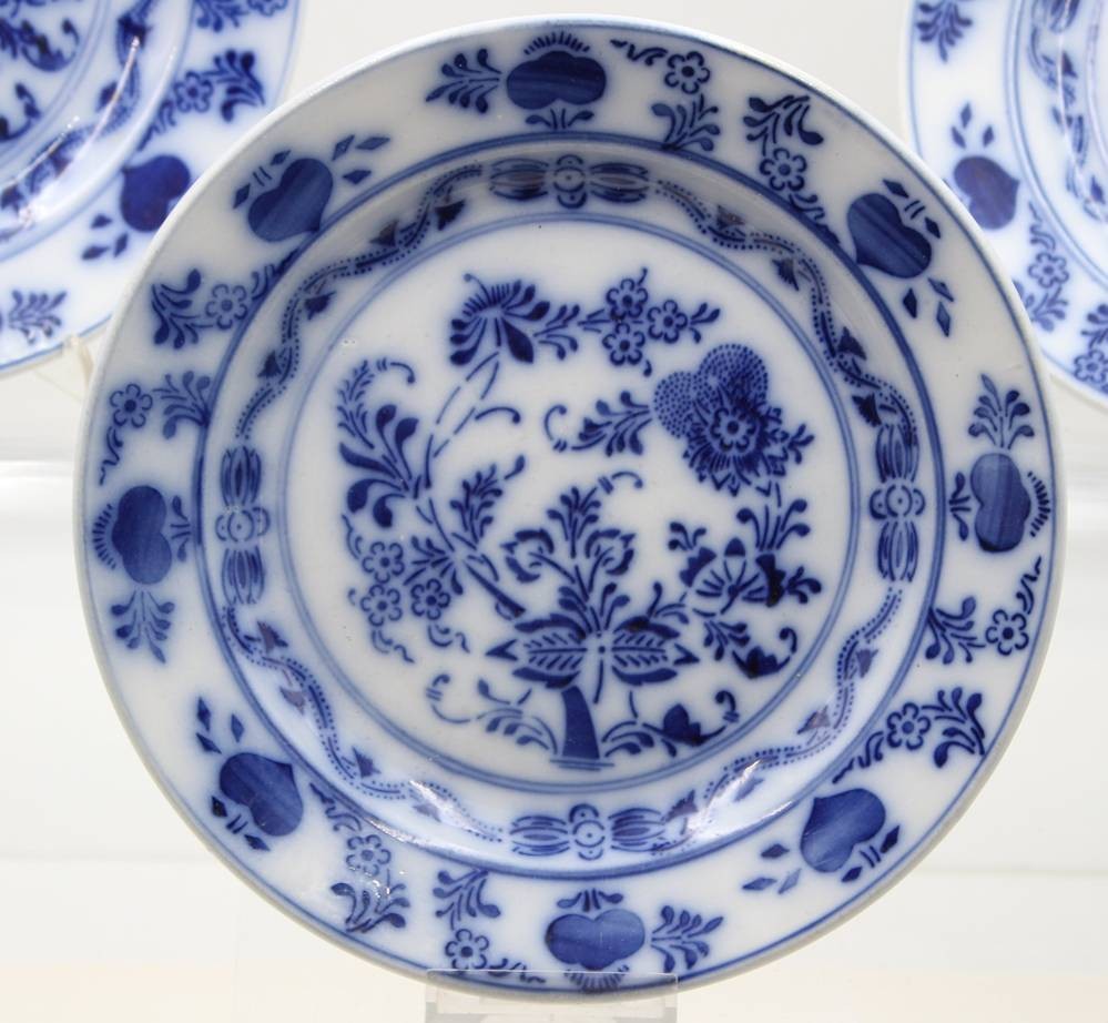 3x alte Teller, Zwiebelmuster, 19, Jhd., 1x bestossen, ca. D-23cm [1]