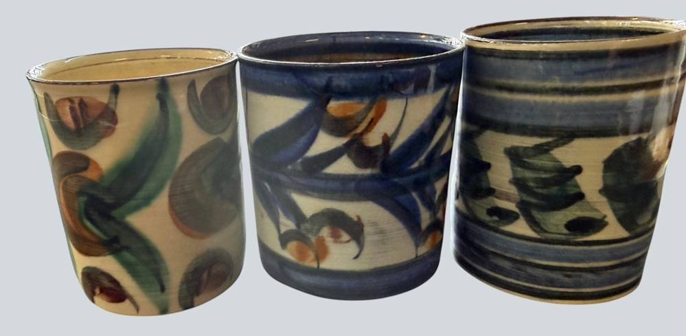 3x Kunstkeramik-Becher, Bücking-Börnsen, H-ca. 8,5 cm [1]
