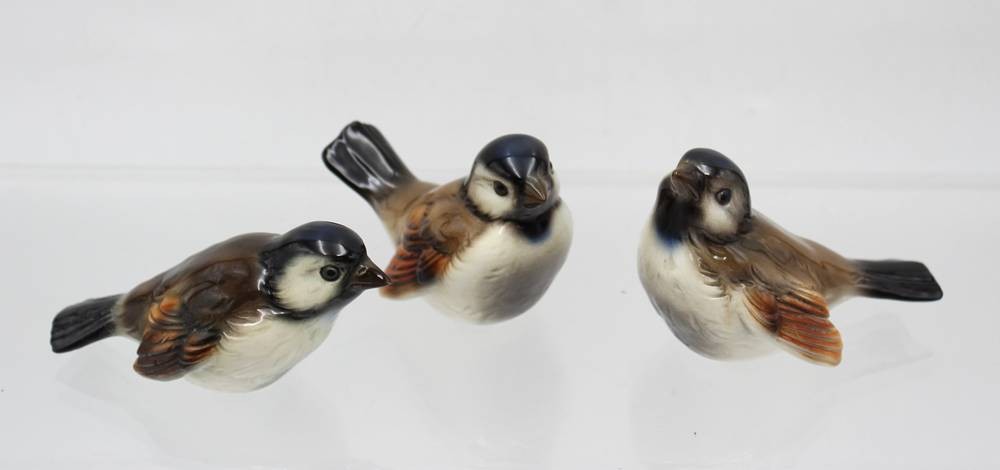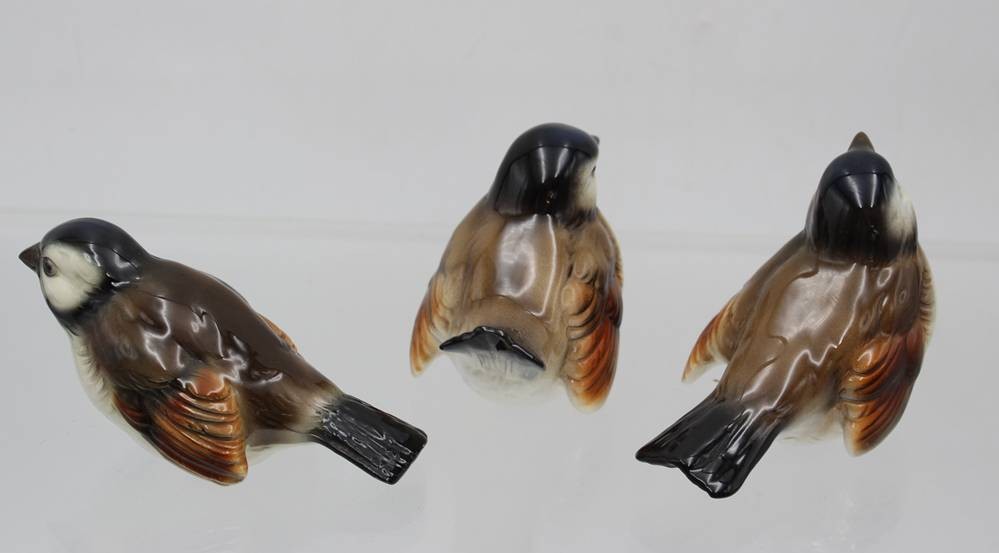 3x Spatzen von Goebel, bemalt in Unterglasurfarben, ca. H-7,5cm [1]