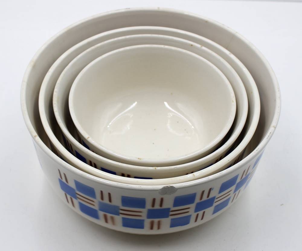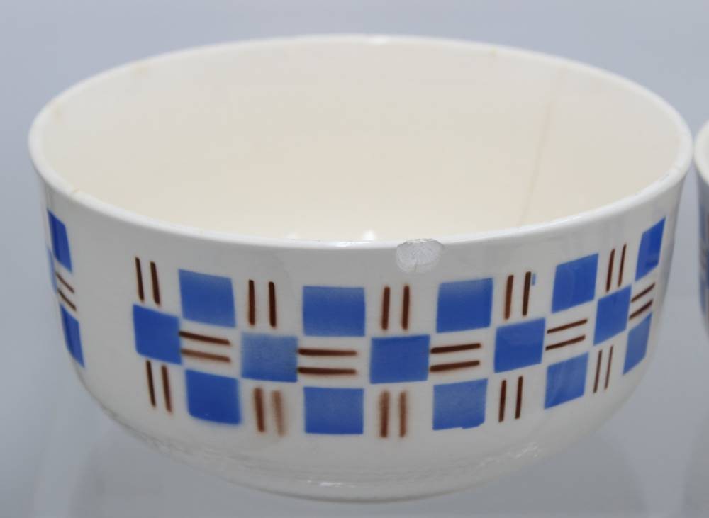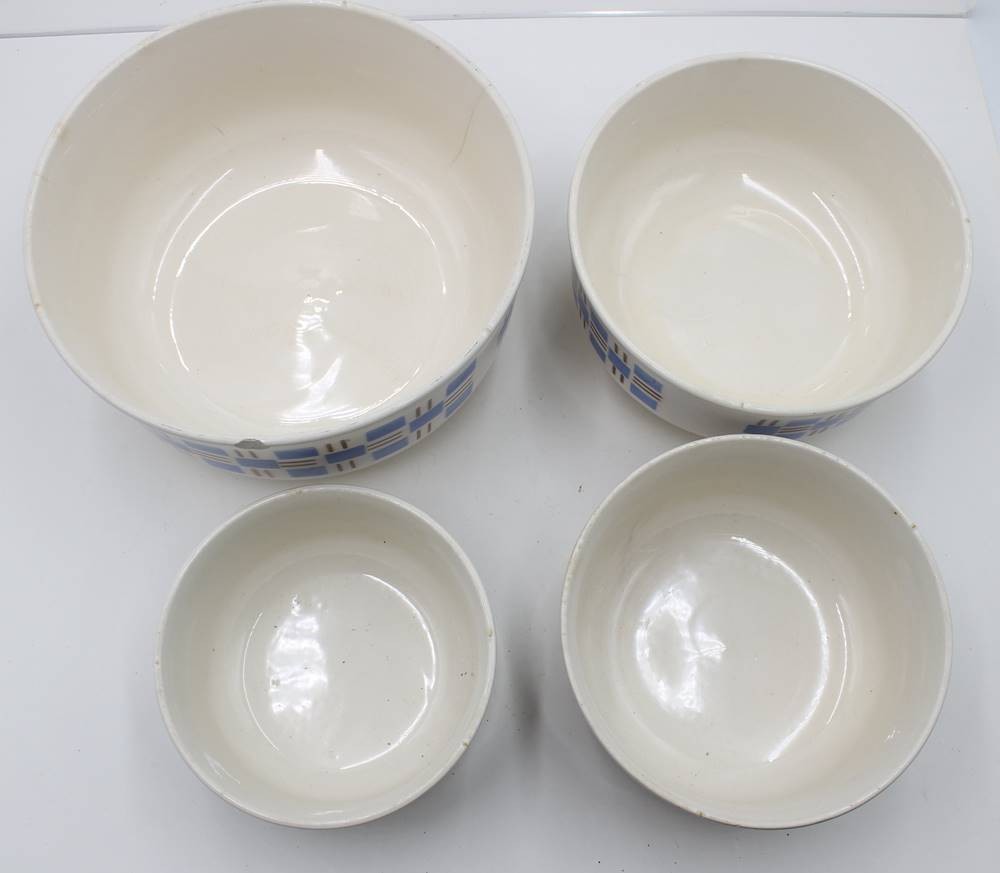 4tlg. Schalen-Set, Art-Déco, ungemarkt, gr. Schale mit Altriss und Bestossung, ca. H-10,5cm D-22cm bis 6,5cm D-14cm [1]