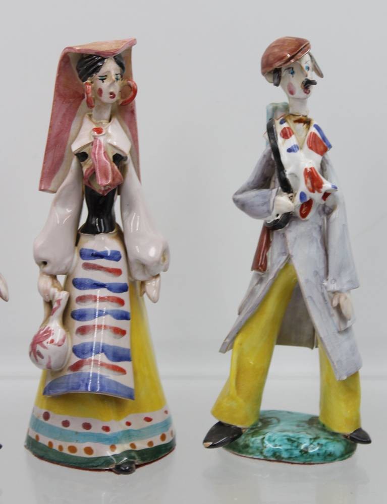 4x div. Figuren, Italien, Majolika, Carlino Sciacca, 1x an Hand bestossen, ca. H-20cm [1]