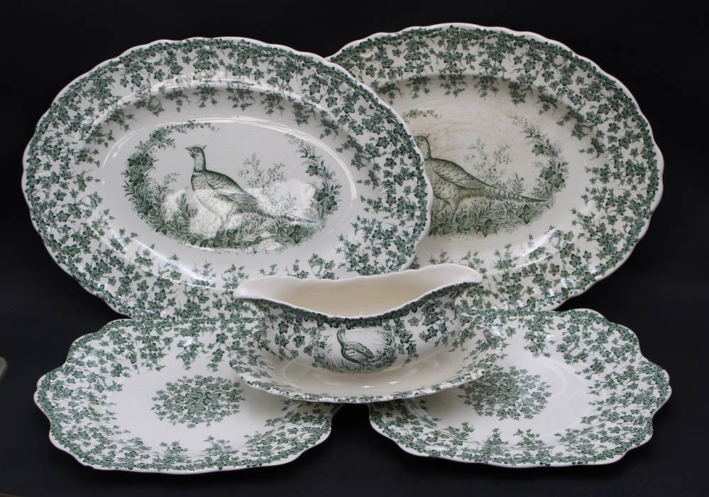 5 Teile Crown Ducal Geschirr mit Fasan, 1 kl. Schale mit Chip