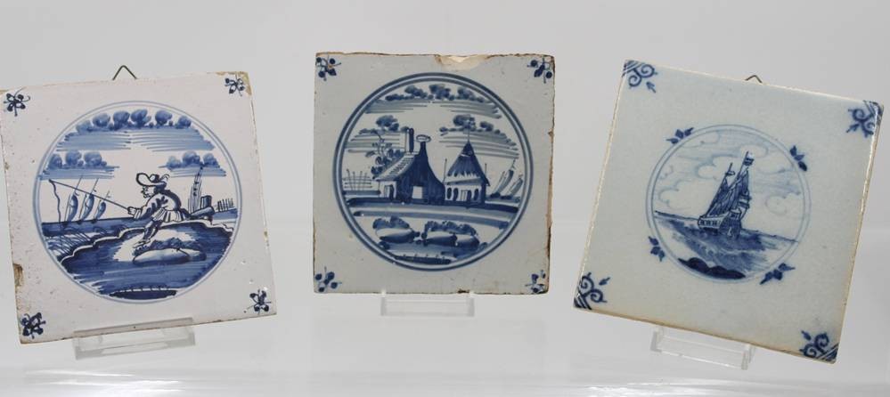 6x antike Fliesen, Holland, je ca. 13 x 13cm