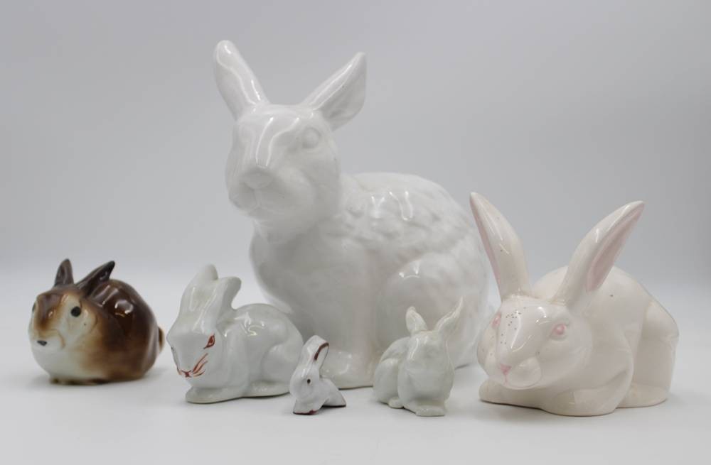 6x div. Hasen-Figuren, 1x gemarkt, Größter H-22cm. [1]