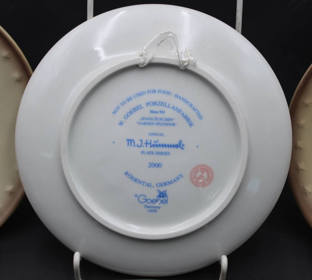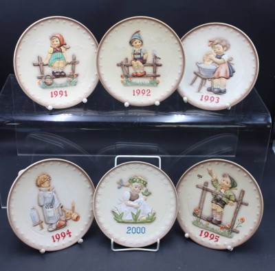 6x Sammelteller, Goebel, Hummelmotive, 1991 bis 1995 und 2000, je 1x Schleifstrich. ca. D-19cm [1]