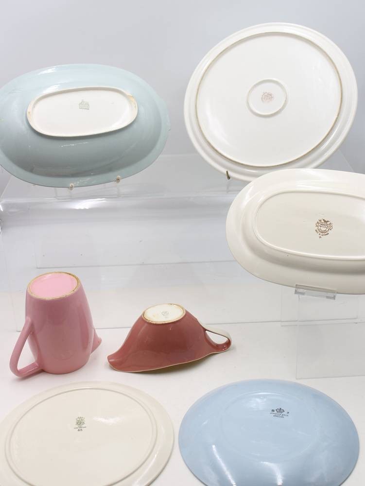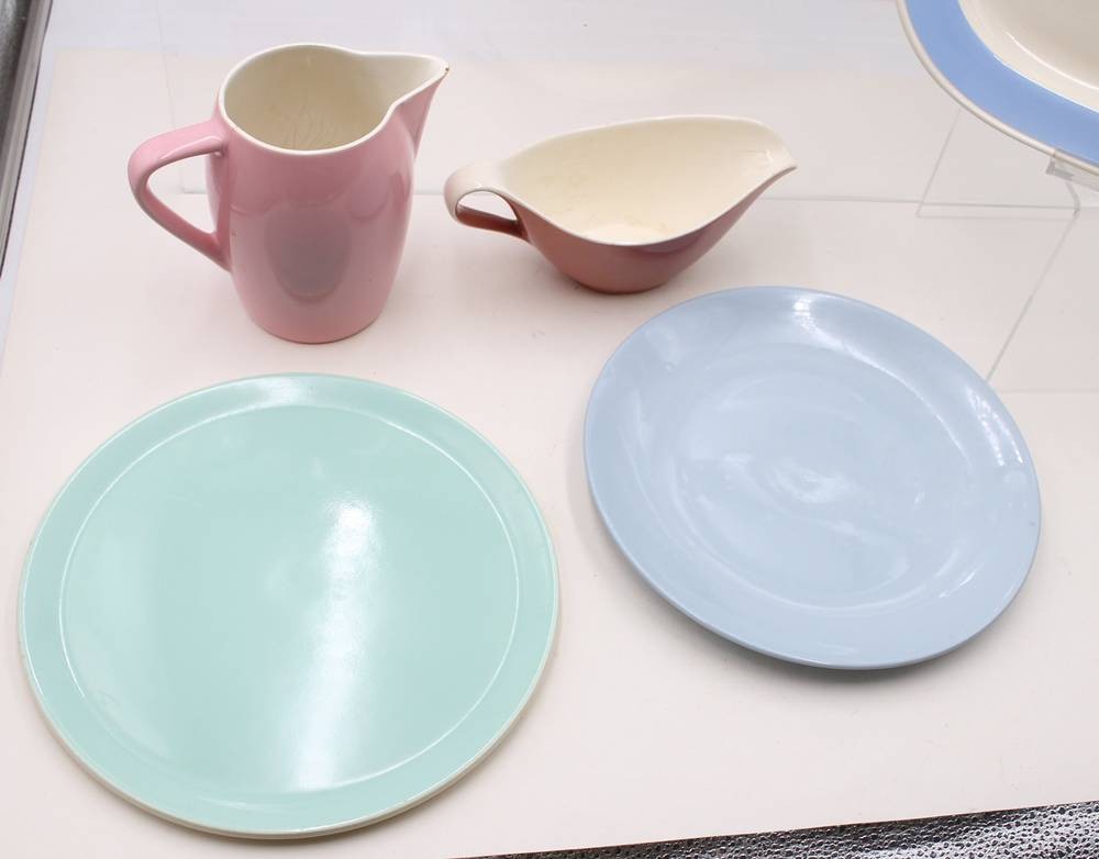 7 Teile Keramik, 50/60er Jahre, untersch. Manufakturen, 3 Teile bestossen, Krug H-13,5cm [1]