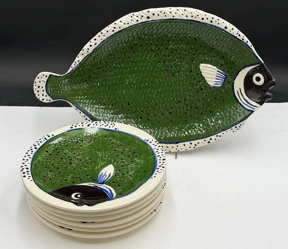 8 teiliges Fischservice, 6 Teller, D-23,5 cm, gr. Platte, L-40 cm, Sauciere, Cortendorrf [1]