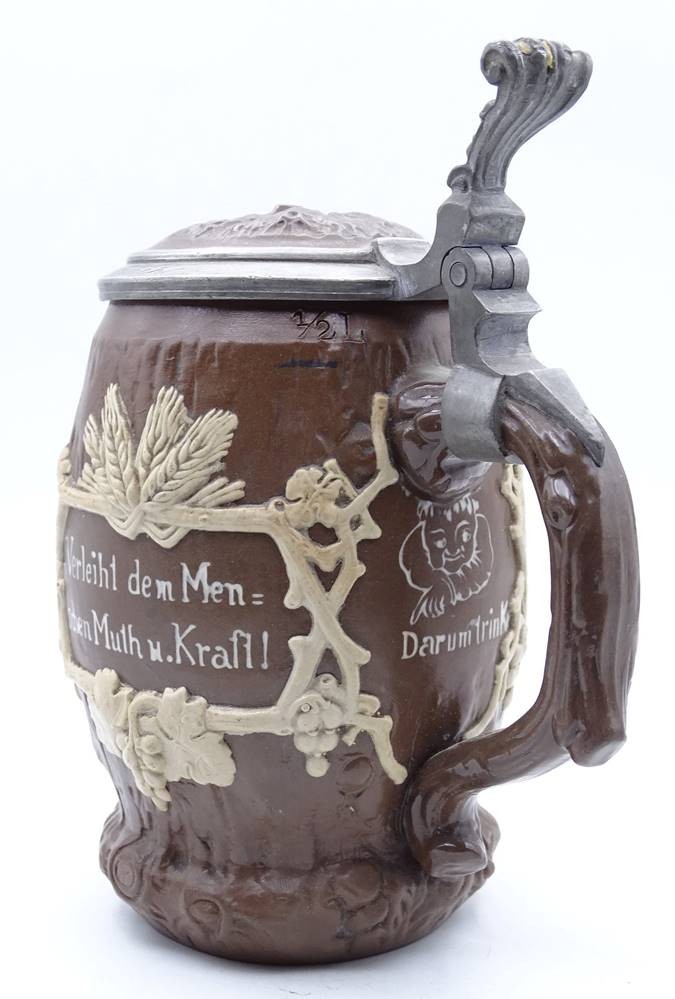 Alter Bierkrug "Villeroy & Boch " Mettlach, (1890-1919) Modellnr. 1028 ,Spruch [1]