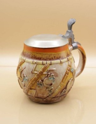 Art-Déco Bierkrug, Zinndeckel, gemarkt, H-14cm. [1]