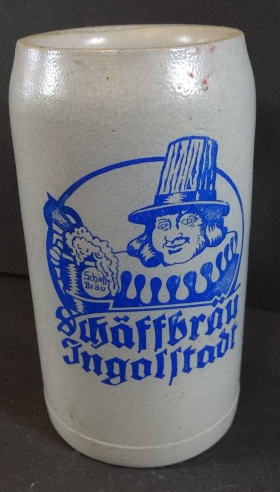 Bierkrug Schäffbräu Ingolstadt, 1 L, graues Steinzeug, kl. Abplatzer etc [1]