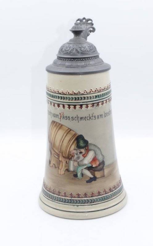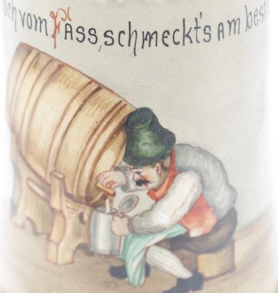 Bierkrug um 1900, bemalt, undeutl. Pressmarke, H-22cm. [1]