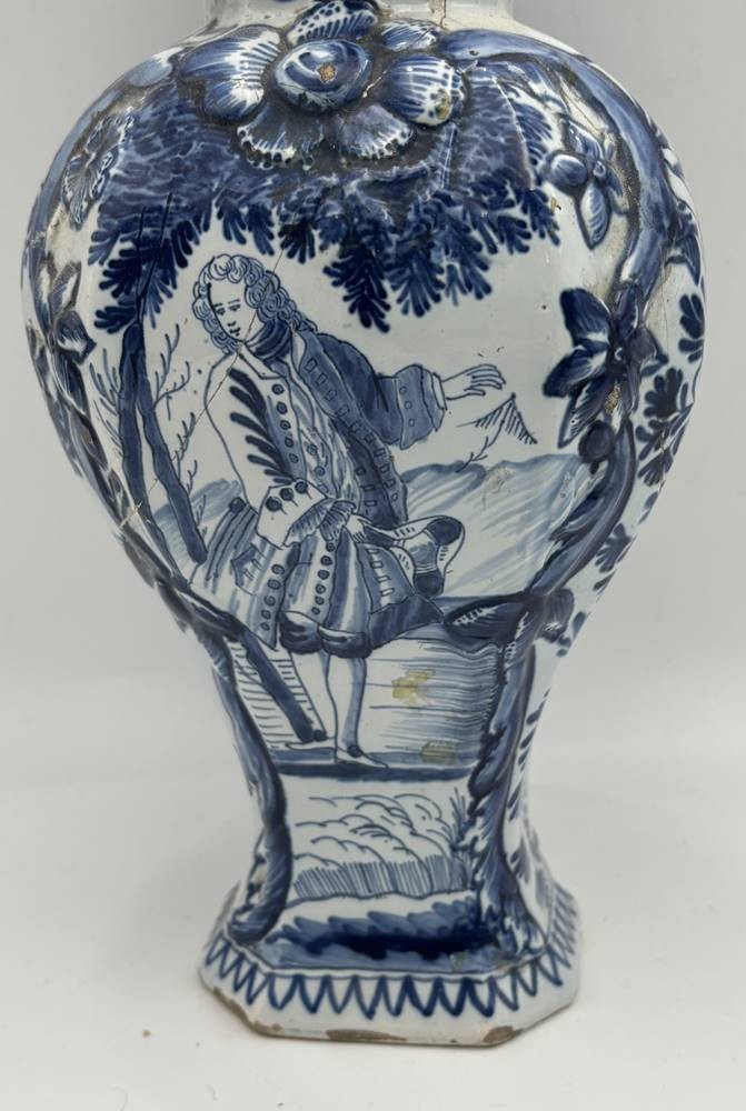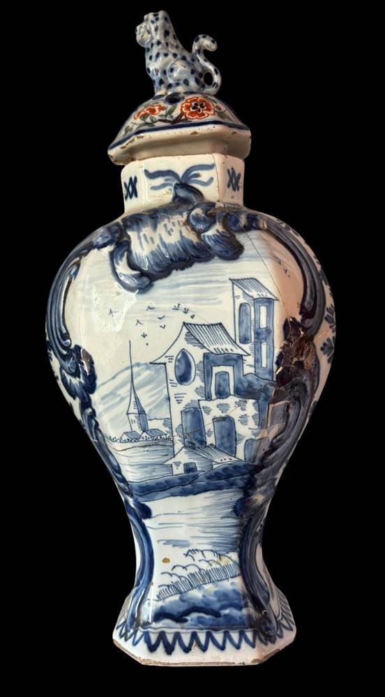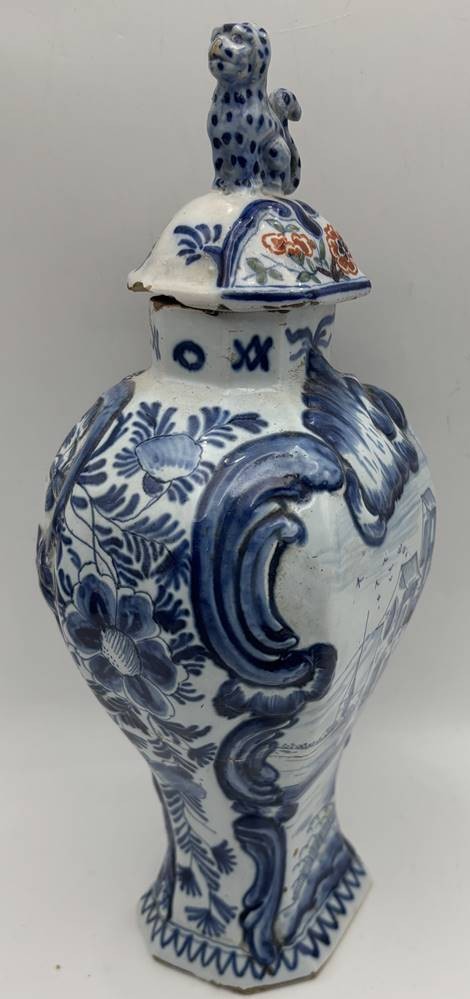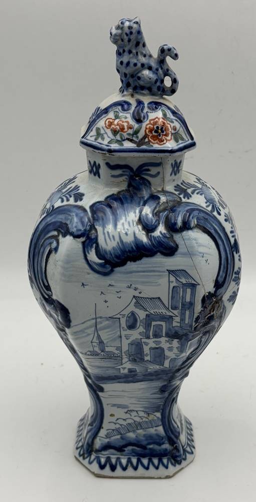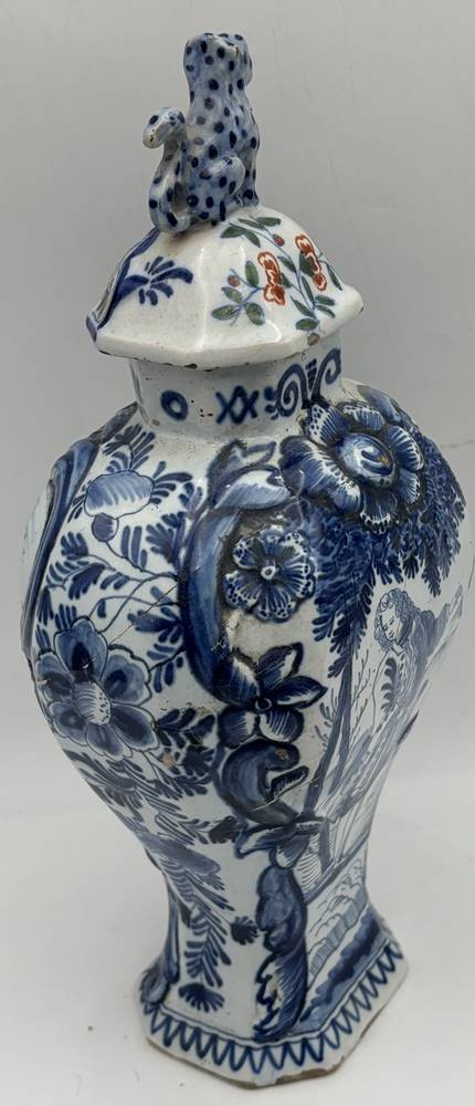 Deckelvase mit Blaumalerei, Delft, 18.Jhd., H-29 cm, Glasurabplatzer, altrissig [1]
