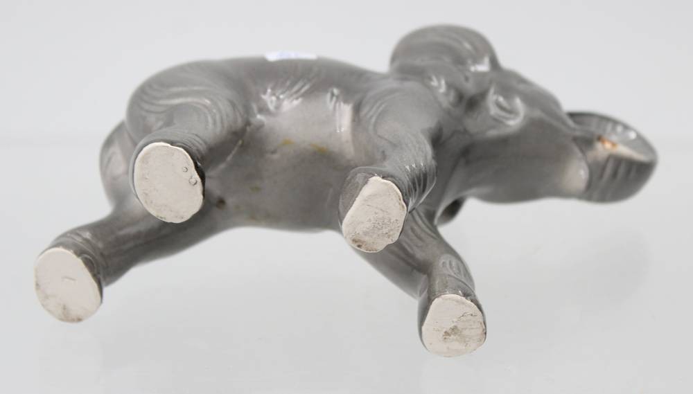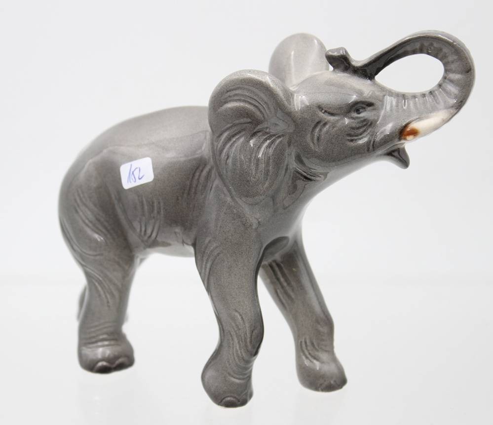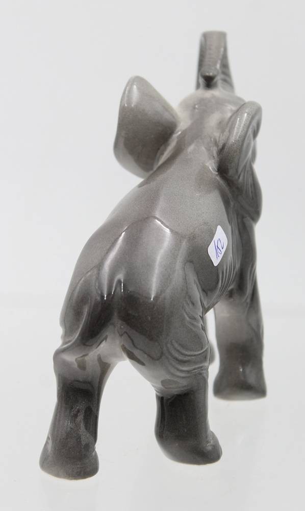 Elefant mit erhobenem Rüssel, ungemarkt, Unterglasurfarben, ca. H-13cm [1]