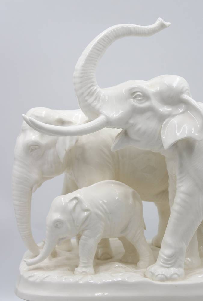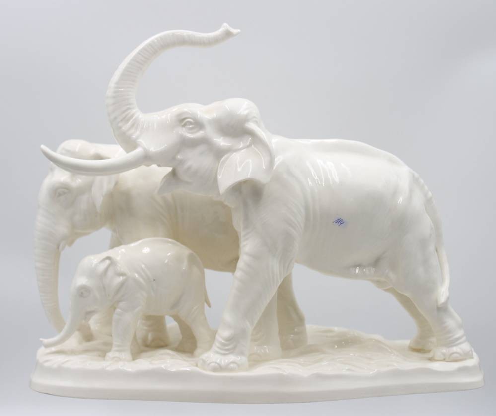 Elefantengruppe, HERTWIG & CO. / KATZHÜTTE, 30/40er Jahre, Modellnr. 1319, H-34cm L-43cm [1]