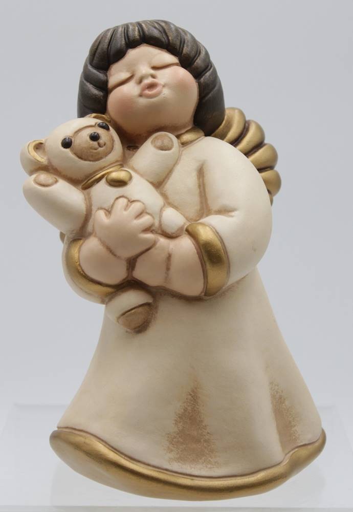 Engel mit Teddy, Thun, bemalt, H-18cm.
