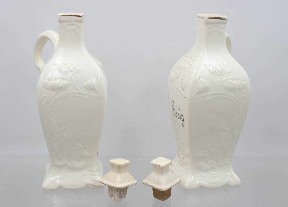 Essig und Oel, Jugendstil, Reliefdekor der Zeit, Goldbemalung stark berieben, Deckel 1x bestossen und wohl nicht original, ca. H-24cm