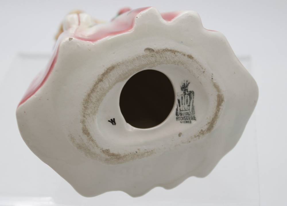 Figur, Royal Belvederé, Mädchen mit Blumen, polychr. Bemalung in Unterglasur, ca. H-15cm.