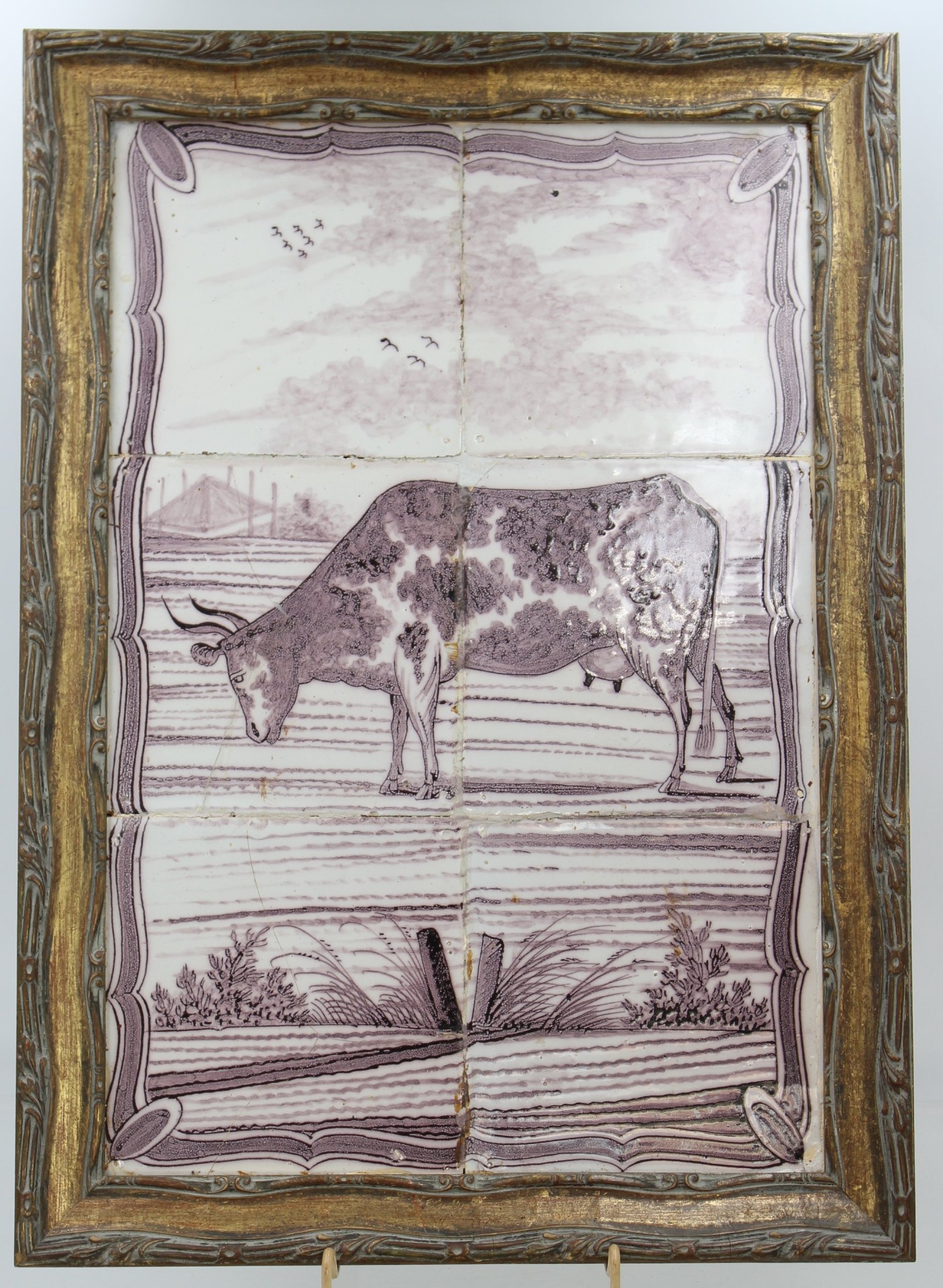 Fliesenbild, älter, handgemalt, gerahmt, RG 31 x 43,5cm