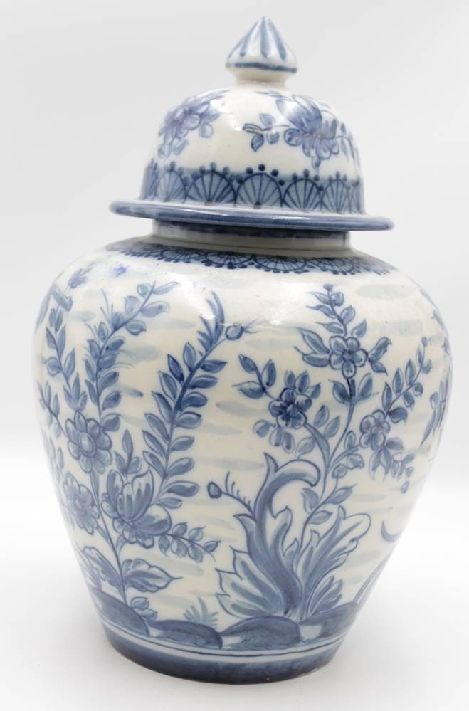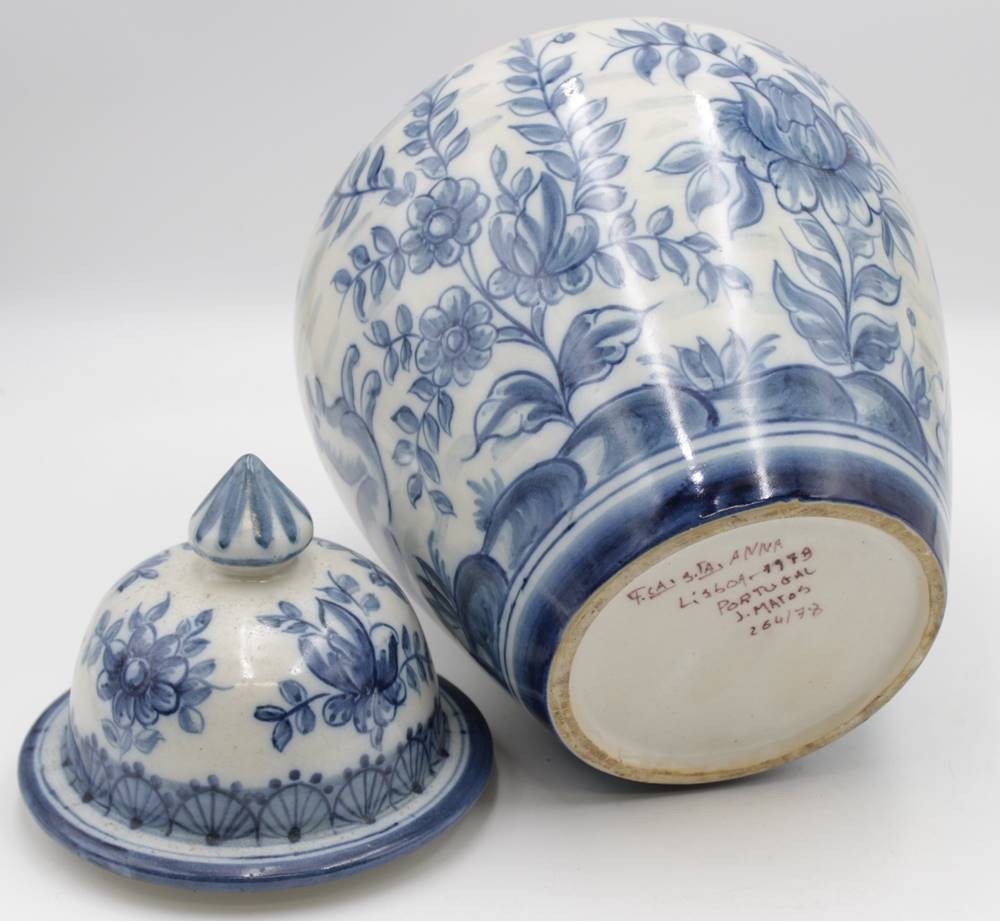 gr. Deckelvase, J.Matos Portugal, florales Bemalung in Unterglasur, H-36,5cm. [1]